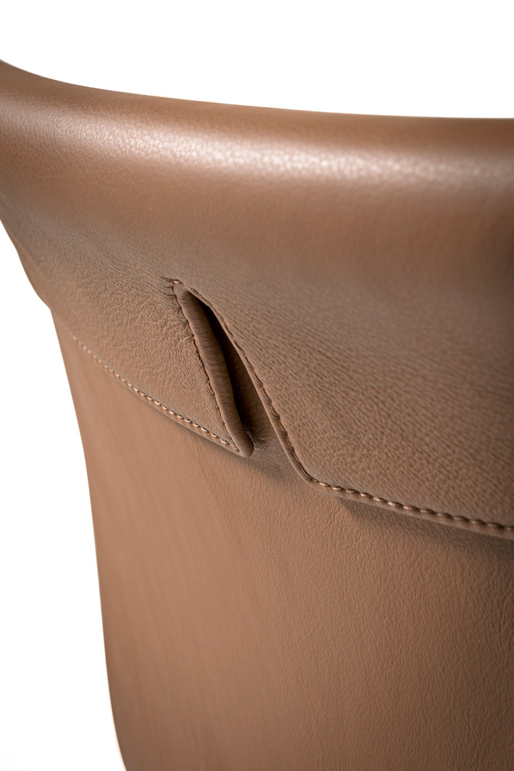 Every element, from the stitching to the padding, reflects the excellence of traditional leatherwork. The leather upholstery, finished in a warm cognac tone, pairs elegantly with the specially selected metal frame, creating a refined contrast between the warmth of the material and the coolness of its support. Its lines are enhanced by the perfect synthesis of tradition and modernity, where each feature tells a story of authentic mastery.