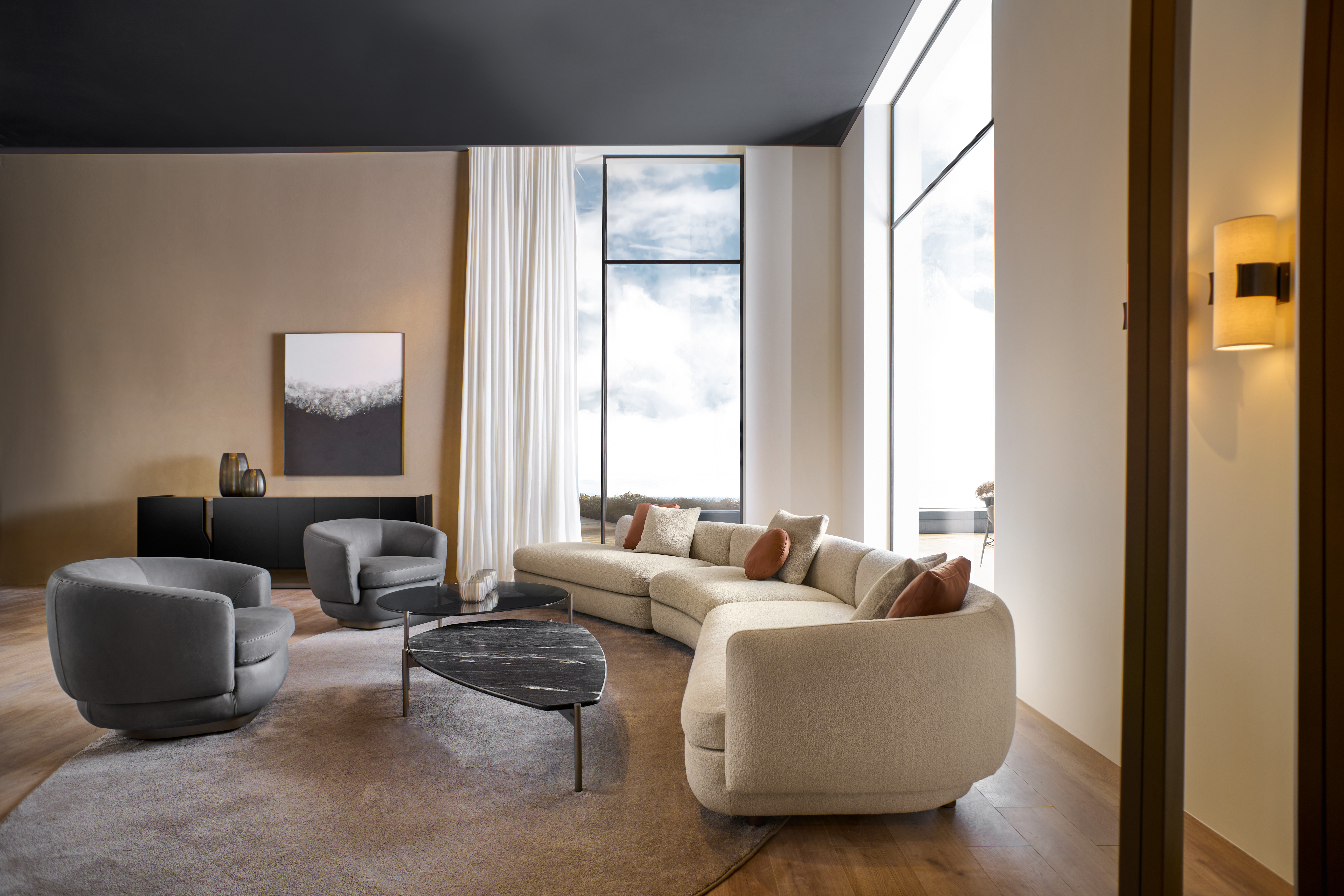 The Gabrielle sofa system consists of different elements, and it is extremely versatile, able to find its place in any context and to compose different, multifunctional configurations, from the classic sofa, to the ergonomic chaise longue or the ottoman.