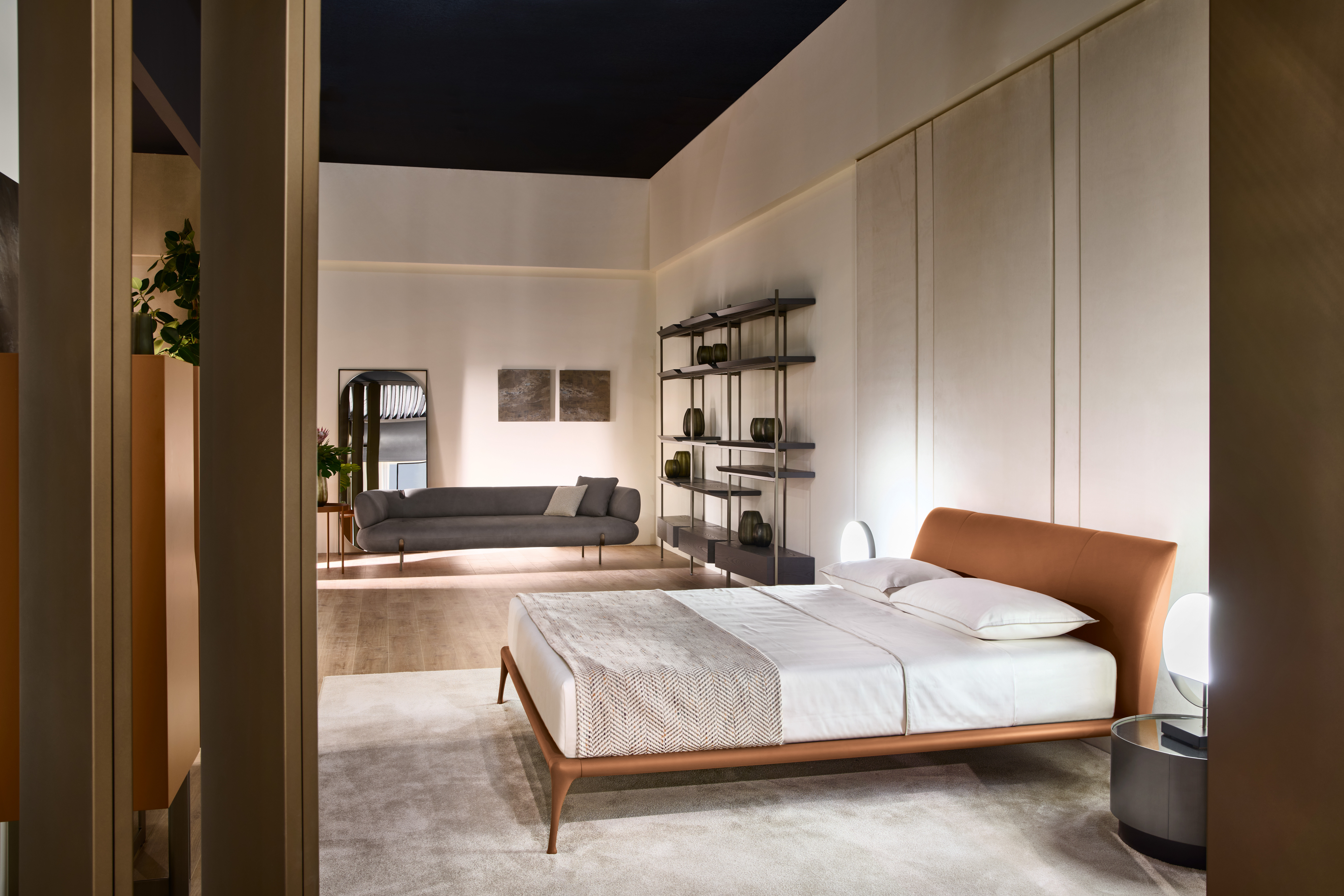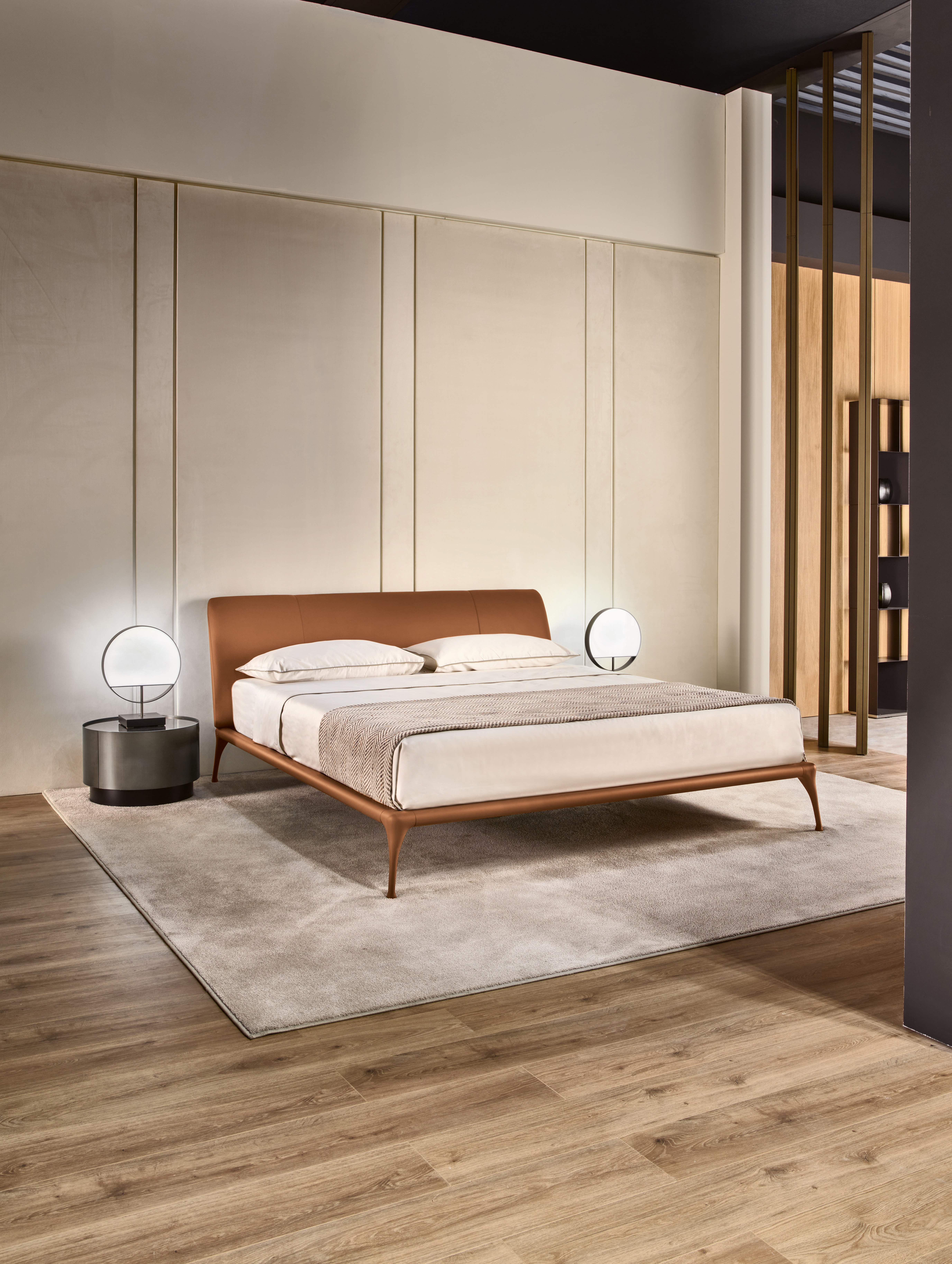 La struttura perimetrale e i piedi sono in fusione di alluminio; la testata imbottitaad effetto sella, con un anima di legno curvato imbottito, rivestito con tessuto, pelle (con cuciture a vista), ecopelle o con tessuto e pelle fornita dal cliente. Un’aura vintage che rende accogliente l’intera camera da letto. Il letto Iseo è disponibile in varie dimensioni per reti da cm: 120x200 (letto da una piazza e mezzo), 140x200 (letto alla francese) e 160x200 (letto matrimoniale).